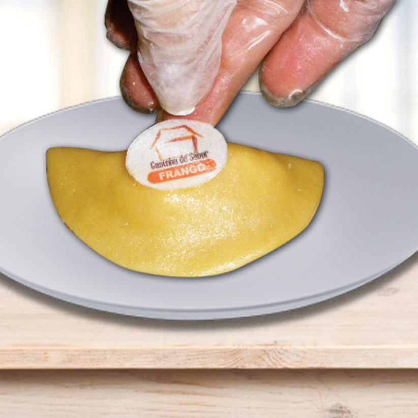 As etiquetas comestíveis garantem a visualização rápida do sabor do salgado, ganhando tempo no processo, dispensando outras marcações como azeitona, bolinhas de massa, que podem soltar ou confundir o atendente e o cliente no ponto de vendas. Podem ser personalizadas com qualquer imagem ou texto.